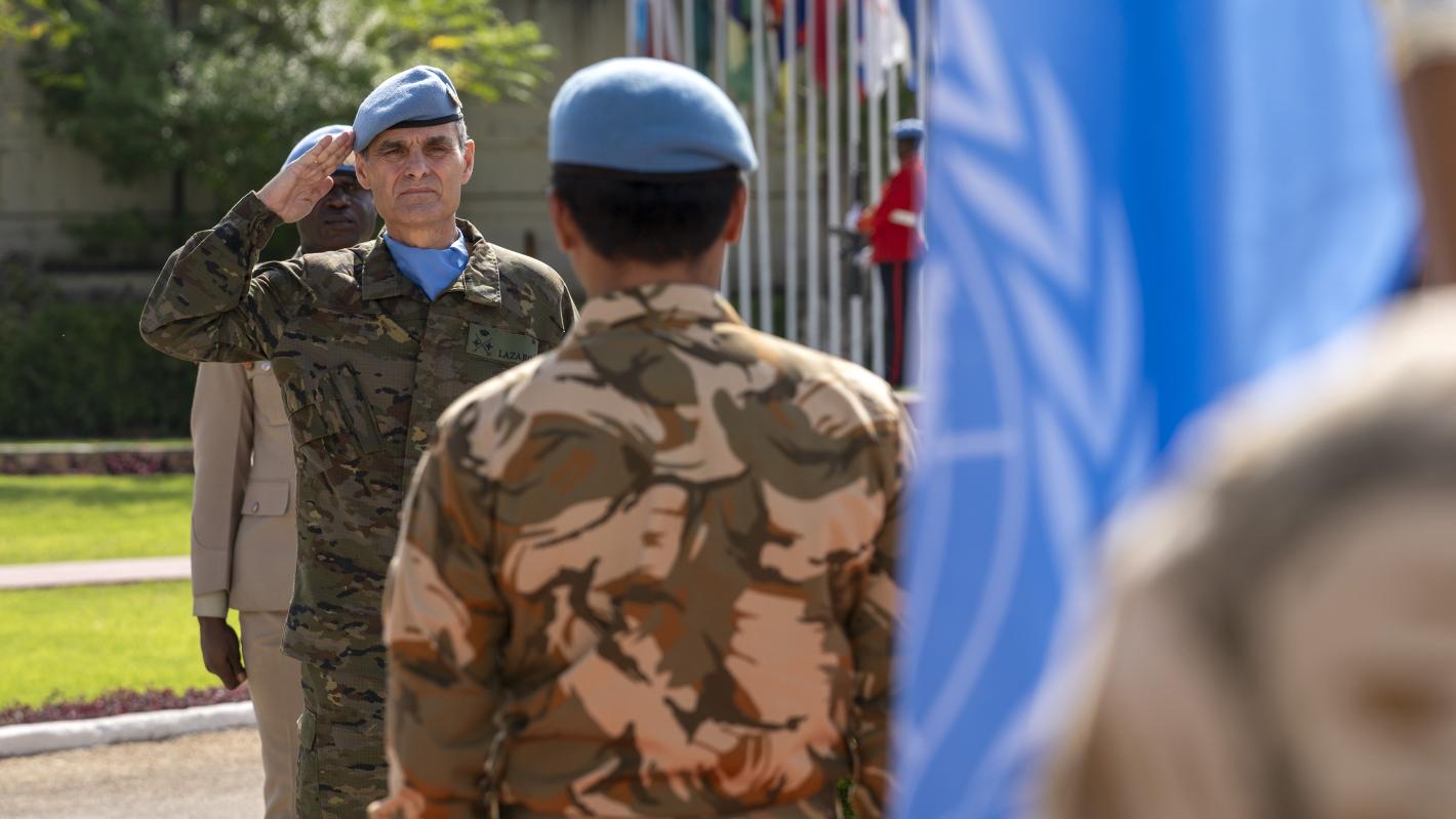 بعد رفع أعلام الأمم المتحدة ولبنان والوحدات العسكرية، وضع اللواء لاثارو وممثل القوات المسلحة اللبنانية العميد روجيه حلو أكاليل الزهور على النصب التذكاري لليونيفيل تكريماً لجنود حفظ السلام الذين فقدوا حياتهم خلال خدمة السلام في لبنان.