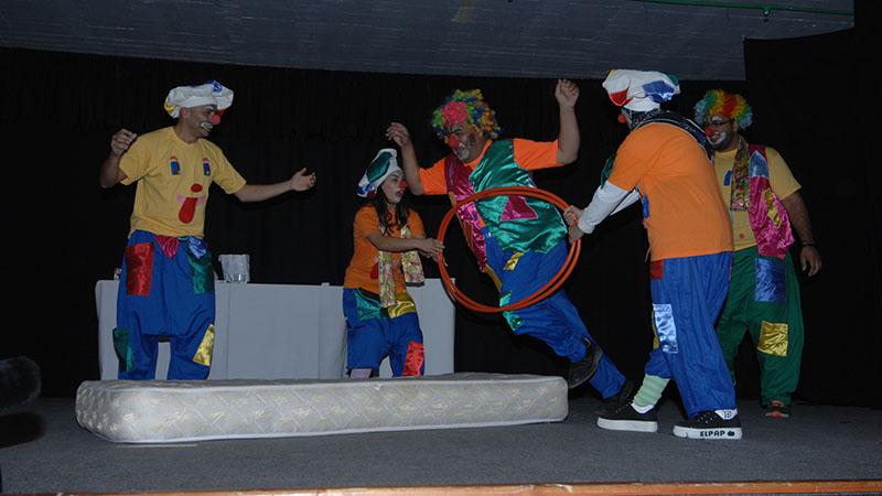 عرض أداء المتدربين في الحفل الختامي للدورة التدريبية للعلاج بالتهريج، في مركز مصان في صور، جنوب لبنان.