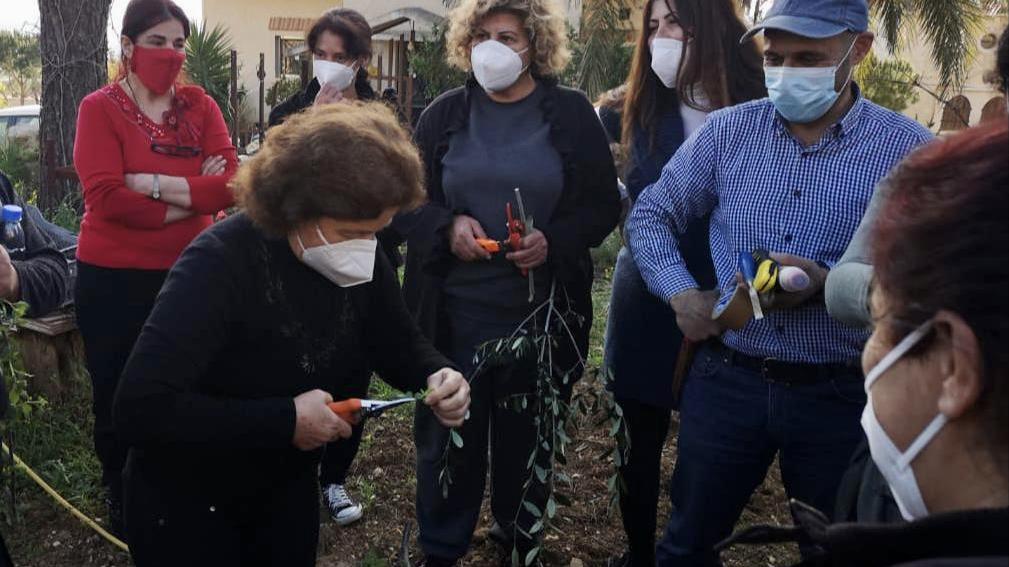 اما مدرب المشروع الرئيسي نبيل سري الدين فقد قال إن المشروع يعلم المشاركات مهارات الحصاد والبستنة والتطعيم. وأضاف: "نحن نقوم بتعليمهم حتى يكونوا قادرات على رعاية أرضهم والحصول على محصول جيد."