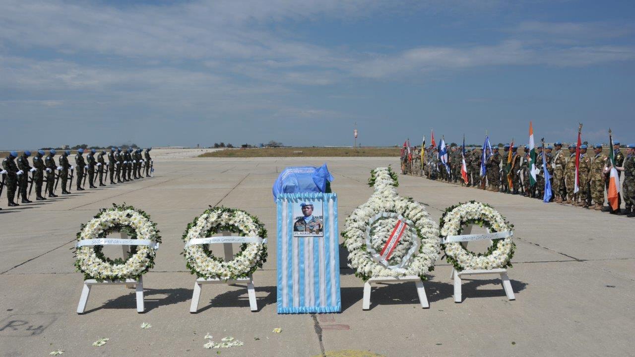 قامت اليونيفيل والقوات المسلحة اللبنانية اليوم بإلقاء التحية الأخيرة تكريماً للعريف ميرسي أداده من الكتيبة الغانية، والتي توفيت عن عمر يناهز ٣٦ عاماً في الصباح الباكر من ٥ نيسان بعد فترة قصيرة من المرض، مع الإشارة الى ان العريف أداده هي أم لطفل.