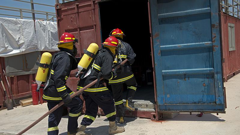 استخدم المتدربون الأربعة عشر جهاز التنفس الذاتي الآمن (SCBA) في بيئة مليئة بالدخان ونفذوا عمليات الإنقاذ مستخدمين هذا الجهاز ، بالإضافة إلى تطبيق إجراءات وتقنيات البحث والانقاذ في سيناريوهات مختلفة.