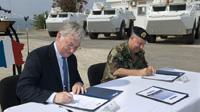 The French Ambassador to Lebanon Denis Pietton, on behalf of his government, today handed over eight Armoured Personnel Carriers (APCs) to the Lebanese Armed Forces (LAF) at a ceremony held at the UNIFIL Headquarters in Naqoura.