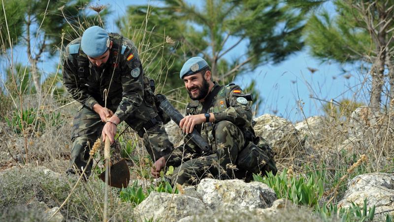 120 soldiers and peacekeepers from the Lebanese Armed Forces and UNIFIL worked shoulder-to-shoulder to manually plant seedlings on 850,000 m2 of land in Ibel al-Saqi.