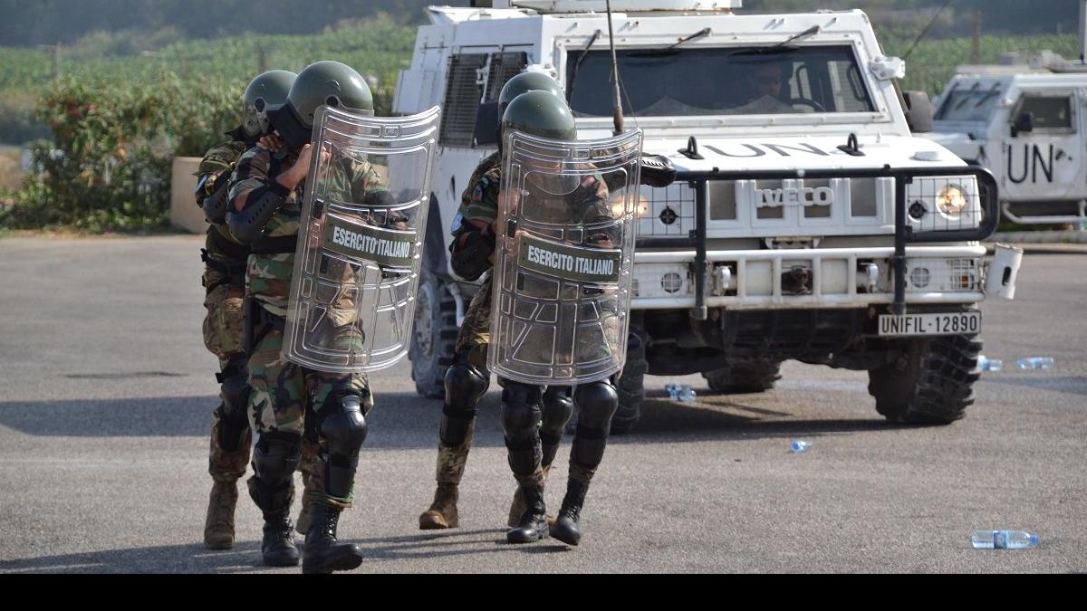 UNIFIL’s Italian Battalion, commanded by Colonel Massimo Crocco, today carried out a Crowd and Riot Control (CRC) training exercise with the Lebanese Armed Forces personnel in the Tyre district, south-western Lebanon.