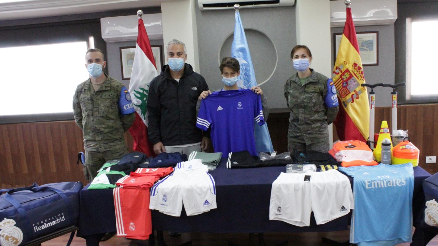 The equipment and cloths, donated to the local Nejmeh Sporting Club during a ceremony held in the UNIFIL Sector East Headquarters in Ibl al-Saqi on 24 November, were provided by the Real Madrid Foundation based in Spain, in collaboration with UNIFIL Spanish battalion.