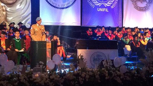 The Head of Mission and Force Commander of the United Nations Interim Force in Lebanon (UNIFIL), Major-General Luciano Portolano, yesterday delivered the keynote address at the graduation ceremony of the American University of Science and Technology held in Biel, Beirut.