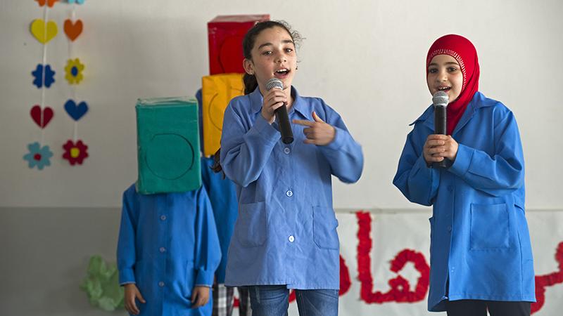 School children singing during a road Safety event organized by UNIFIL at Qana's Public School.