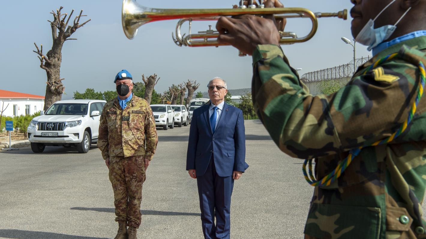 UNIFIL’s Head of Mission and Force Commander, Major General Stefano Del Col, today welcomed Lebanon’s new Minister of National Defense, Maurice Sleem, to the peacekeeping mission’s headquarters in Naqoura, South Lebanon.