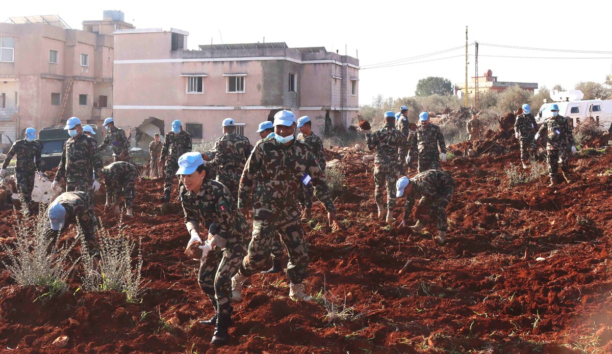 A team of 25 Nepalese peacekeepers, supported by bulldozers, cleared and levelled a 2,500-square-metre field, preparing it for olive tree plantation scheduled for early January 2026.