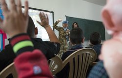 21 June 2018... Public School raise their hands to answer questions about UNIFIL and the Blue Line. School children from ... Line. School students and peacekeepers from UNIFIL MCOU in a group photo. As the ...